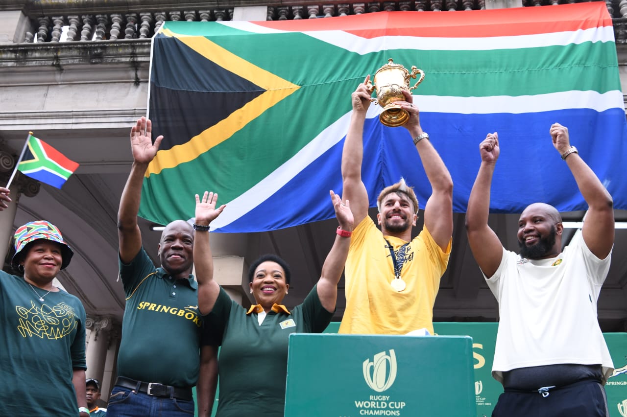 UNdunankulu waKwaZulu-Natali uMhlonishwa uNomusa Dube-Ncube ubonge abantu baKwaZulu-Natali ngokwehlukana kwabo ngokuphuma ngobuningi behalalisela iqembu lama Springbok ngokunqoba kwalo Indebe yoMhlaba ye Rugby World Cup.